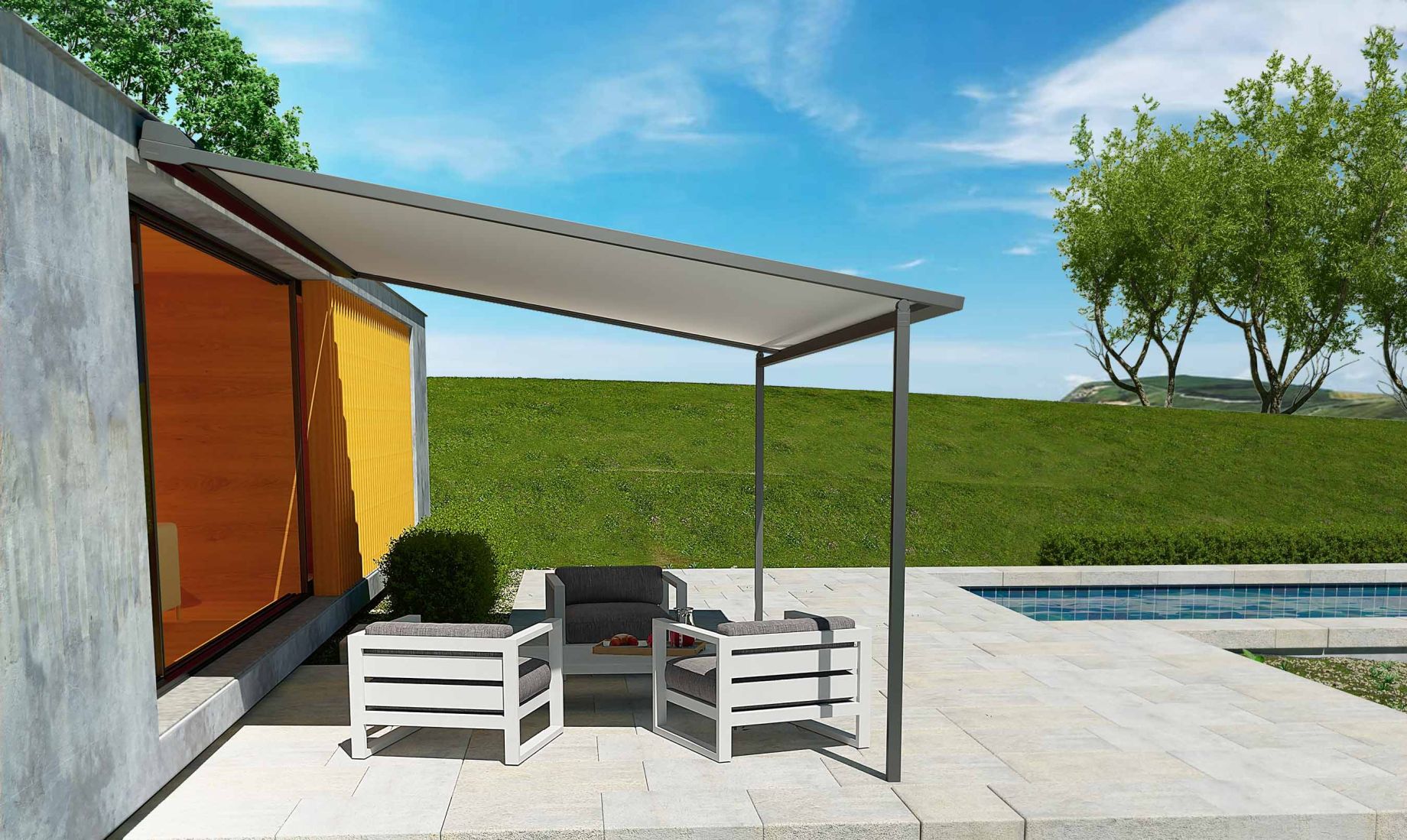 • Toile fixe tendue : protection solaire permanente et esthétique minimaliste